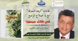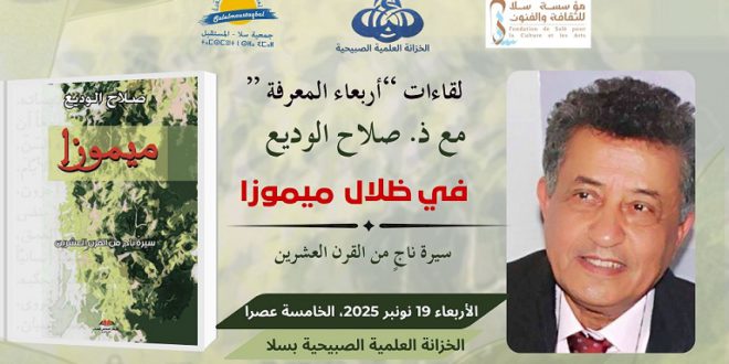 يوم الأربعاء 19 نونبر 2025 و في رحاب الخزانة العلمية الصبيحية و بشراكة مع جمعية سلا المستقبل و مؤسسة سلا للثقافة و الفنون والخزانة الصبيحية ينظم لقاء ماتع مع الكاتب والمناضل الحقوقي صلاح الوديع، تحت عنوان “في ظلال ميموزا”، للغوص في خلفيات وتجليات تجربته الإنسانية والسياسية كما بسطها في سيرته …